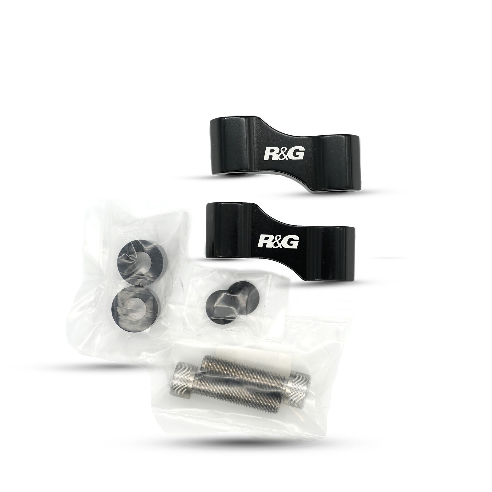 BRAND: R&G Racing SKU: MW0007BKThis mirror wideners set contains one m10 x 1.25 right-hand thread mirror widener and one m10 x 1.25 left-hand thread mirror widener designed to both lift your mirrors and move them further outwards for better visibility clearance.