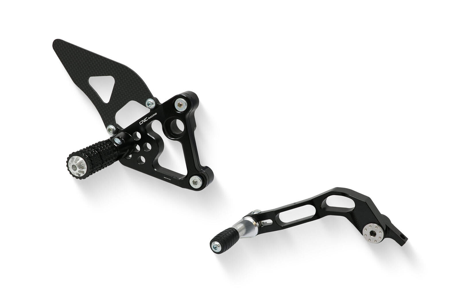 Quality raw materials, from the lightness of aluminum alloys to the strenght and safety of lightweight steel screws, anodizing, 3D machining and accuracy in every detail make the product unique and unmistakable.- Accurate coupling between levers and pins for maximum smoothness of the moving parts.- "Racing" footrest designed to offer maximum grip even in the most critical wet conditions. Reclining and lockable with an elastic steel pin.- Six positions for the footrest, offering a wide choice of settings compared to the original rearsets. - Lever pegs with eccentric adjustment, allows fine adjustment of the lever both for the gear lever and the brake lever.- Carbon heel guards are designed to guarantee optimal support and protection, with excellent lightness and refined aesthetics.- Hole for motorcycle workshop stand. Please check Specifications for model compatibility.Delivery note: At Sportsbike, we offer a wide range of high-quality products, many of which are sourced directly from Europe. We have stock both in Australia and shipped in directly from Europe. Therefore, please allow 1-3 weeks for delivery. This ensures we can provide the best selection and service for your specific needs. We will confirm the ETA of shipping within 24-48 hours of an order being placed. Thank you for your understanding and patience!
