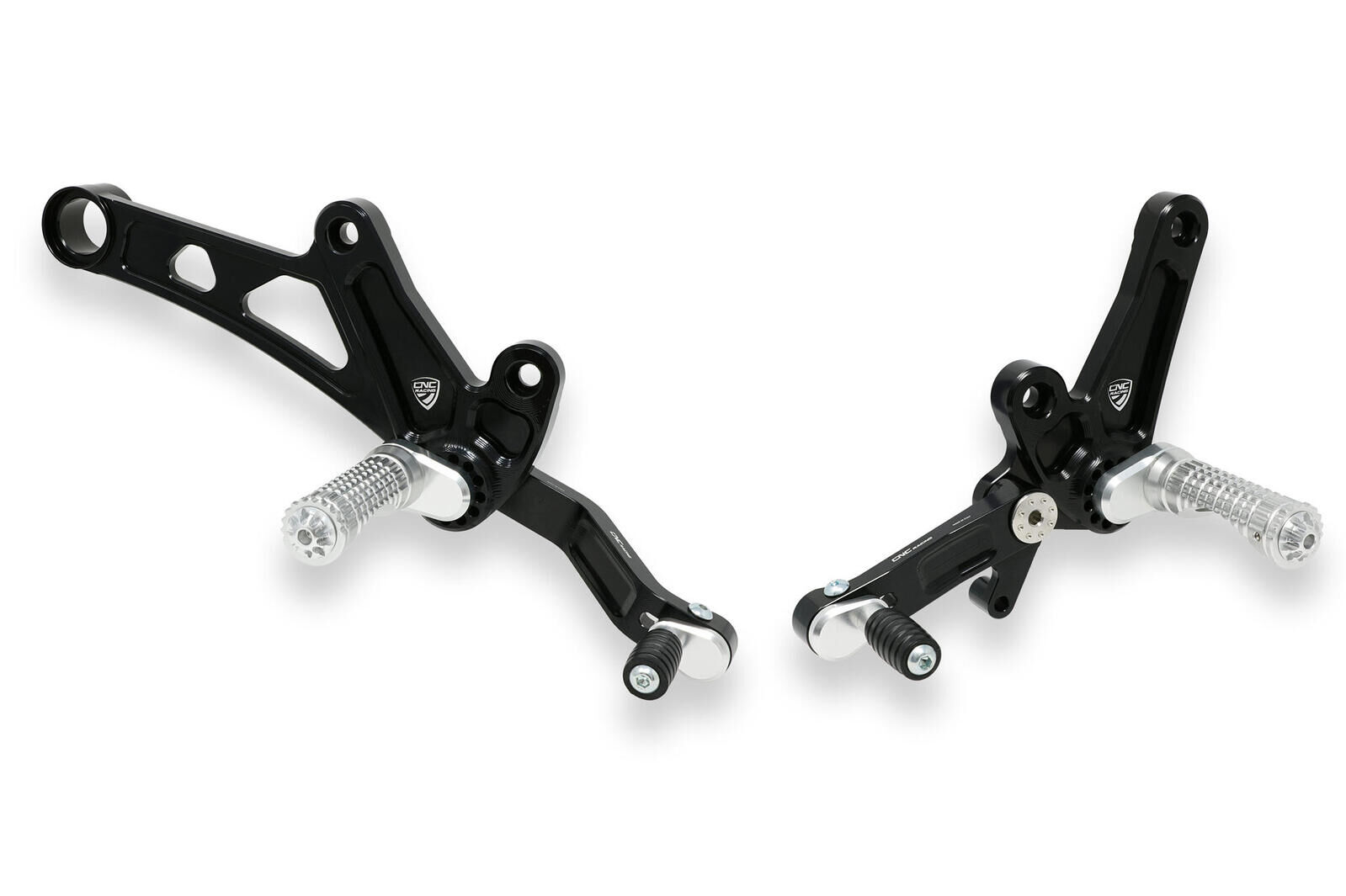 Adjustable rear sets machined from light alloy billet and then given an anodized surface finish.Main features:- adjustment with eccentric of the foot pegs, 12 positions available- 360° adjustment with eccentric of the gearshift and rear brake lever pegs- foot pegs "racing" knurled for maximum grip even in critical wet conditions. Please check Specifications for model compatibility.Delivery note: At Sportsbike, we offer a wide range of high-quality products, many of which are sourced directly from Europe. We have stock both in Australia and shipped in directly from Europe. Therefore, please allow 1-3 weeks for delivery. This ensures we can provide the best selection and service for your specific needs. We will confirm the ETA of shipping within 24-48 hours of an order being placed. Thank you for your understanding and patience!