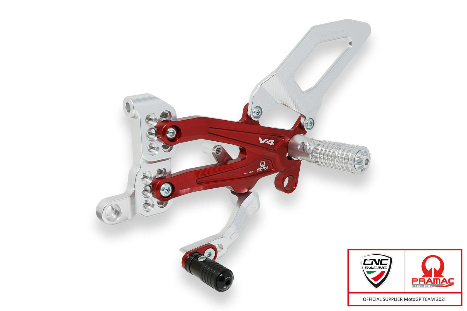 Top quality materials, robustness and specific assembly components for extreme use characterize the new rear sets for Ducati Panigale V4.Main features:1) oversized sections for maximum stress on the track race.2) 12 positions3) road and reverse (GP pattern) shifting.4) footpegs have been CNC knurled for maximum grip even in the wettest conditions. 5) support for race bike stand.6) alluminium heel guards, developed to provide optimum support and protection.7) footrests and toe pegs are folding and lockable by steel spring pins, included in the kit.8) the gearshift and rear brake levers are mounted on bearings for optimum smoothness.9) pressure brake light switch is included. Please check Specifications for model compatibility.Delivery note: At Sportsbike, we offer a wide range of high-quality products, many of which are sourced directly from Europe. We have stock both in Australia and shipped in directly from Europe. Therefore, please allow 1-3 weeks for delivery. This ensures we can provide the best selection and service for your specific needs. We will confirm the ETA of shipping within 24-48 hours of an order being placed. Thank you for your understanding and patience!