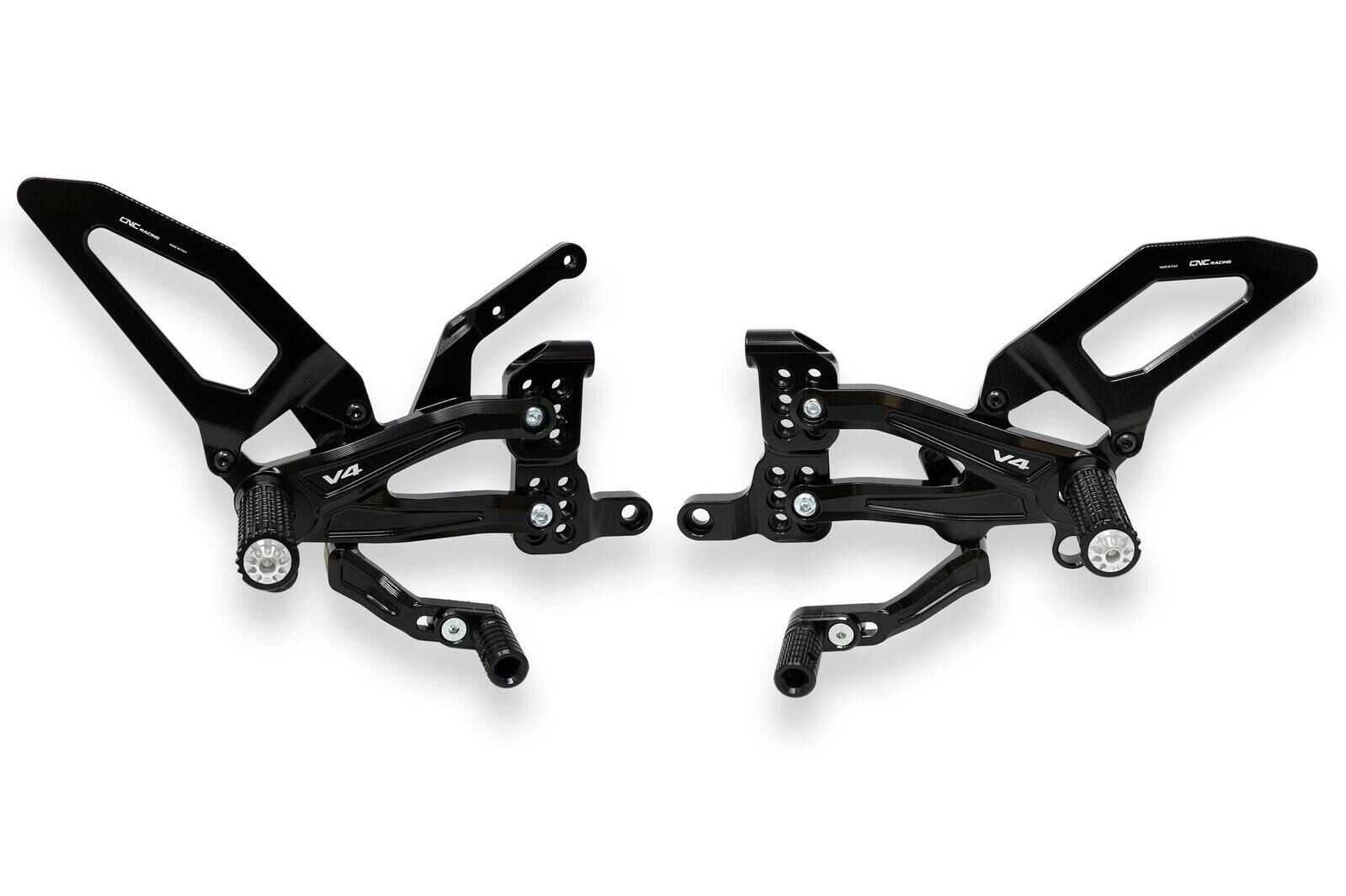 Top quality materials, robustness and specific assembly components for extreme use characterize the new rear sets for Ducati Panigale V4.Main features:1) oversized sections for maximum stress on the track race.2) 12 positions3) road and reverse (GP pattern) shifting.4) footpegs have been CNC knurled for maximum grip even in the wettest conditions. 5) support for race bike stand.6) alluminium heel guards, developed to provide optimum support and protection.7) fixed footpegs and toe pegs.8) the gearshift and rear brake levers are mounted on bearings for optimum smoothness.9) pressure brake light switch is included. Please check Specifications for model compatibility.Delivery note: At Sportsbike, we offer a wide range of high-quality products, many of which are sourced directly from Europe. We have stock both in Australia and shipped in directly from Europe. Therefore, please allow 1-3 weeks for delivery. This ensures we can provide the best selection and service for your specific needs. We will confirm the ETA of shipping within 24-48 hours of an order being placed. Thank you for your understanding and patience!