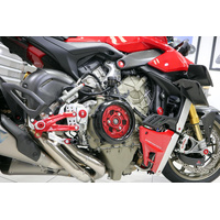 Top quality materials, robustness and specific assembly components for extreme use characterize the new rear sets for Ducati Streetfighter V4/V4 S.Main features:1) oversized sections for maximum stress on the track race.2) 12 positions3) road and reverse (GP pattern) shifting.4) footpegs have been CNC knurled for maximum grip even in the wettest conditions. 5) support for race bike stand.6) carbon fiber heel guards, developed to provide optimum support and protection.7) footrests and toe pegs are folding and lockable by steel spring pins, included in the kit.8) the gearshift and rear brake levers are mounted on bearings for optimum smoothness.9) pressure brake light switch is included. Please check Specifications for model compatibility.Delivery note: At Sportsbike, we offer a wide range of high-quality products, many of which are sourced directly from Europe. We have stock both in Australia and shipped in directly from Europe. Therefore, please allow 1-3 weeks for delivery. This ensures we can provide the best selection and service for your specific needs. We will confirm the ETA of shipping within 24-48 hours of an order being placed. Thank you for your understanding and patience!