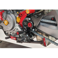 Top quality materials, robustness and specific assembly components for extreme use characterize the new rearsets for Ducati Hypermotard 950.MAIN FEATURES:- Footpegs have been CNC knurled for maximum grip even in the wettest conditions.- Nr. 3 positioning of the support which together with the eccentric adjustment with 24 steps of the footrest allow countless combinations- The gearshift and rear brake levers are mounted on bearings for optimum smoothness and are adjustable on two positions.- The length of the brake and gear levers is adjustable with sliding guide (range of 33 mm.)- Footrests and lever pegs are folding and lockable by steel spring pins, included in the kit.- Road and reverse (GP pattern) shifting: the kit includes the wiring for an easy and reversible inversion of the Ducati QS sensor pulse- Compatible with the original stop light sensor- Bracket for rear brake master cylinder and its oil tank The rearsets can be used with the factory passenger footpegs or with our heel-guard kit PES04B, sold separately. Please check Specifications for model compatibility.Delivery note: At Sportsbike, we offer a wide range of high-quality products, many of which are sourced directly from Europe. We have stock both in Australia and shipped in directly from Europe. Therefore, please allow 1-3 weeks for delivery. This ensures we can provide the best selection and service for your specific needs. We will confirm the ETA of shipping within 24-48 hours of an order being placed. Thank you for your understanding and patience!