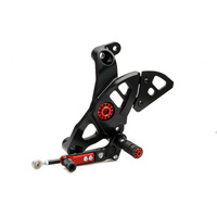 Rear sets made in light alloy, machined from solid and then anodized. TECHINCAL INFO - Footrest reclines and lockable using spring pin in stainless steel- Nr. 2 positioning for the footrest- Brake e shift Level pivoted on double ball bearing- Brake pegs lever (knurled) reclining- Shifting pegs lever reclining- Adjustments slide brake and shift lever operating on sliding guide (range of 35 mm. than the stock configuration - -20 +15 mm)- Attachment for sensor rear stop light- Oil tank and rear brake pump hanger- Steel bolts Aisi 304 Please check Specifications for model compatibility.Delivery note: At Sportsbike, we offer a wide range of high-quality products, many of which are sourced directly from Europe. We have stock both in Australia and shipped in directly from Europe. Therefore, please allow 1-3 weeks for delivery. This ensures we can provide the best selection and service for your specific needs. We will confirm the ETA of shipping within 24-48 hours of an order being placed. Thank you for your understanding and patience!