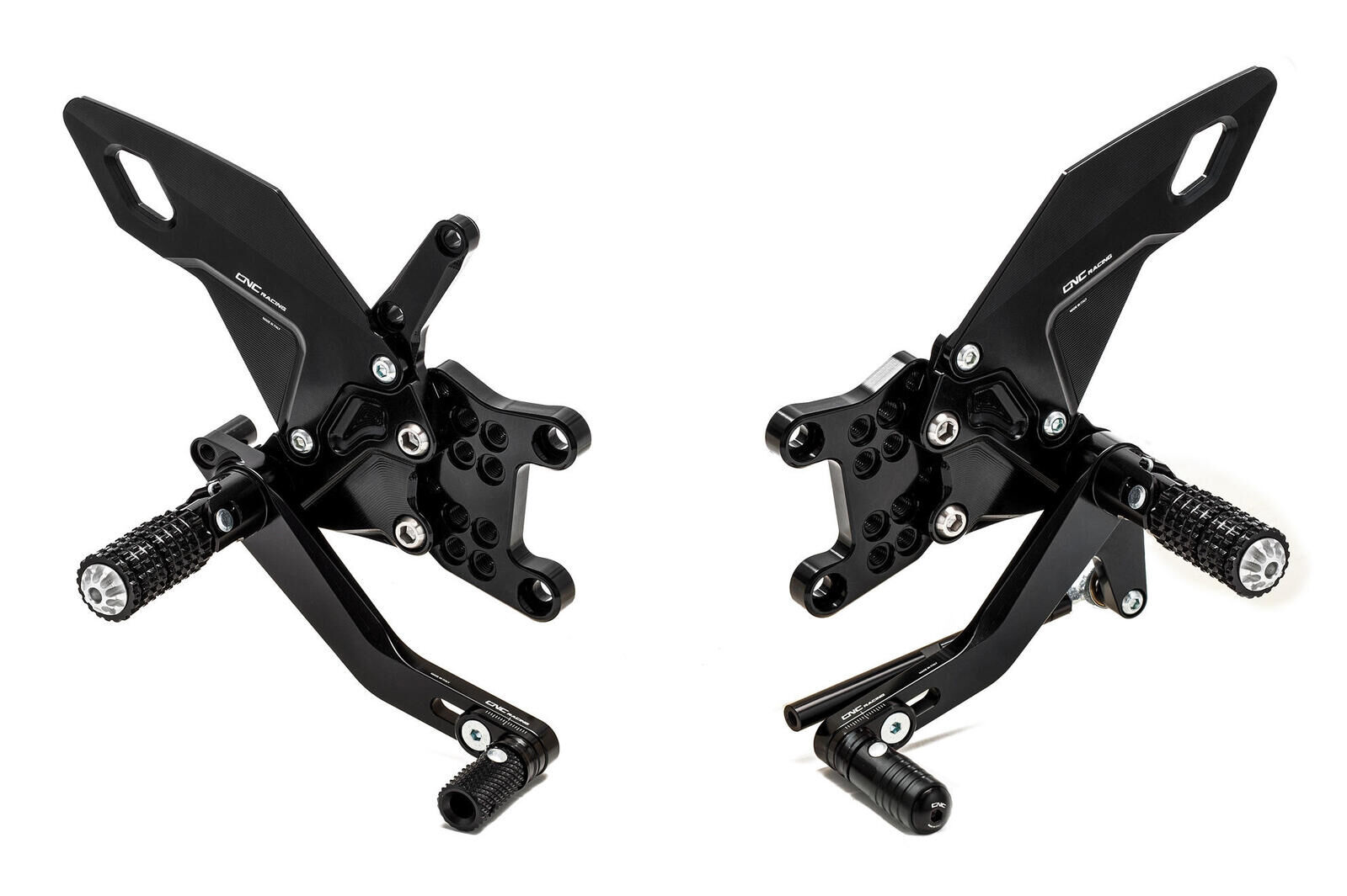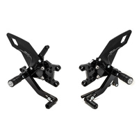 Top quality materials, robustness and specific assembly components for extreme use characterize the new rear sets for Aprilia RSV4 and Tuono.Main features:1) oversized sections for maximum stress on the track race.2) 12 positions3) road and reverse (GP pattern) shifting.4) footpegs have been CNC knurled for maximum grip even in the wettest conditions. 5) support for race bike stand.6) alluminium heel guards, developed to provide optimum support and protection.7) footrests and toe pegs are folding and lockable by steel spring pins, included in the kit.8) the gearshift and rear brake levers are mounted on bearings for optimum smoothness.9) pressure brake light switch is included. Please check Specifications for model compatibility.Delivery note: At Sportsbike, we offer a wide range of high-quality products, many of which are sourced directly from Europe. We have stock both in Australia and shipped in directly from Europe. Therefore, please allow 1-3 weeks for delivery. This ensures we can provide the best selection and service for your specific needs. We will confirm the ETA of shipping within 24-48 hours of an order being placed. Thank you for your understanding and patience!