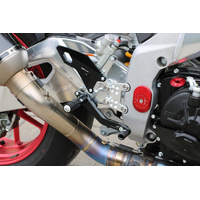 Top quality materials, robustness and specific assembly components for extreme use characterize the new rear sets for Aprilia RSV4 and TuonoMain features:1) oversized sections for maximum stress on the track race.2) 12 positions3) road and reverse (GP pattern) shifting.4) footpegs have been CNC knurled for maximum grip even in the wettest conditions. 5) support for race bike stand.6) alluminium heel guards, developed to provide optimum support and protection.7) footrests and toe pegs are folding and lockable by steel spring pins, included in the kit.8) the gearshift and rear brake levers are mounted on bearings for optimum smoothness. Notice: rear brake light switch not available. Please check Specifications for model compatibility.Delivery note: At Sportsbike, we offer a wide range of high-quality products, many of which are sourced directly from Europe. We have stock both in Australia and shipped in directly from Europe. Therefore, please allow 1-3 weeks for delivery. This ensures we can provide the best selection and service for your specific needs. We will confirm the ETA of shipping within 24-48 hours of an order being placed. Thank you for your understanding and patience!
