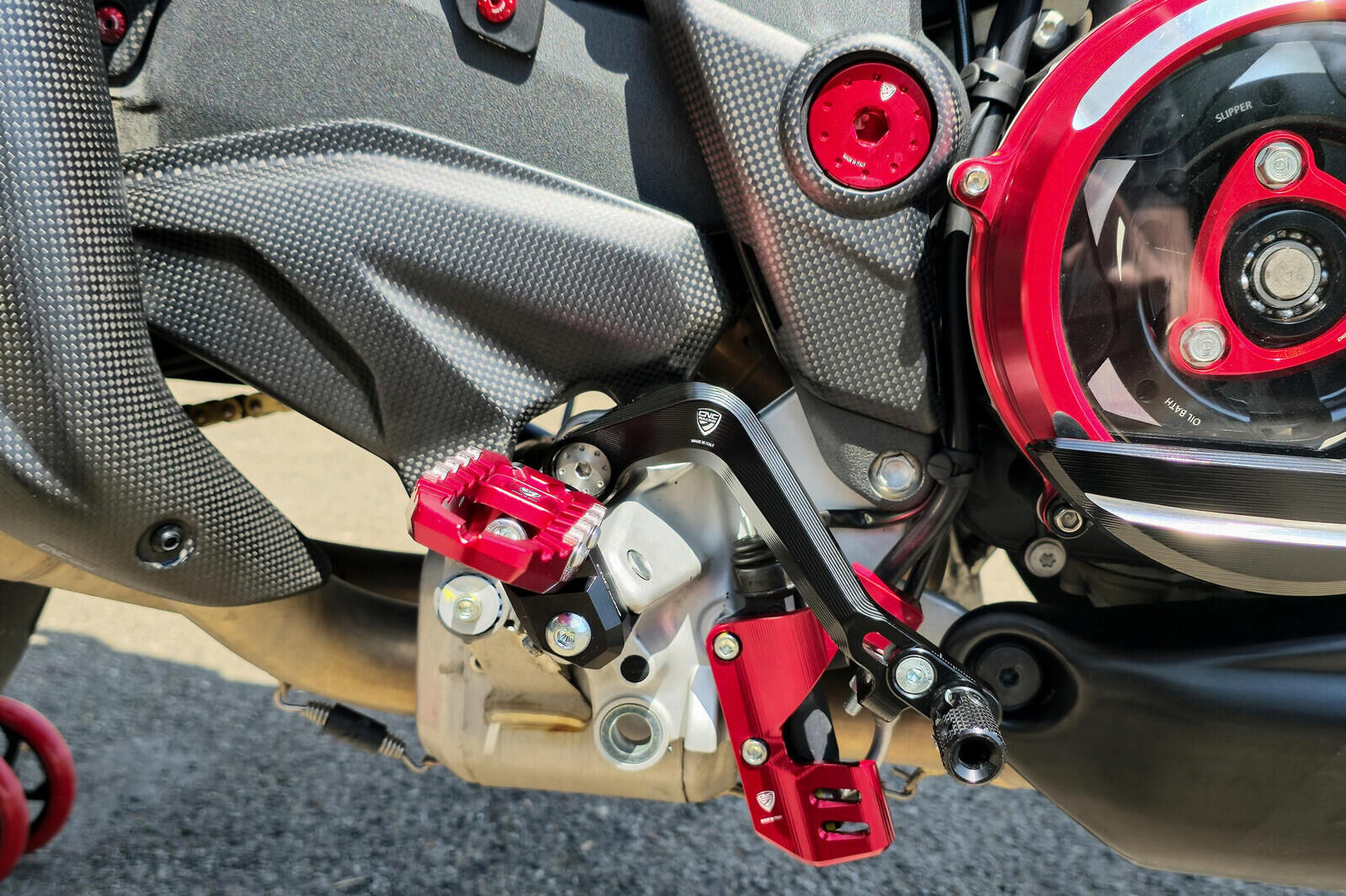 Rear brake lever for Ducati Multistrada V4, V4S and V4 Pikes Peak made in light alloy, machined from solid and then anodized.The slide adjustment allows the customizations of the peg position (range -7/+10 mm).Notice: levers are sold without lever pegs to give the opportunity to combine the preferred lever peg, folding or fixed oneFolding rear brake lever peg - RP9R4B SPORTFixed rear brake lever peg - RP906B Please check Specifications for model compatibility.Delivery note: At Sportsbike, we offer a wide range of high-quality products, many of which are sourced directly from Europe. We have stock both in Australia and shipped in directly from Europe. Therefore, please allow 1-3 weeks for delivery. This ensures we can provide the best selection and service for your specific needs. We will confirm the ETA of shipping within 24-48 hours of an order being placed. Thank you for your understanding and patience!