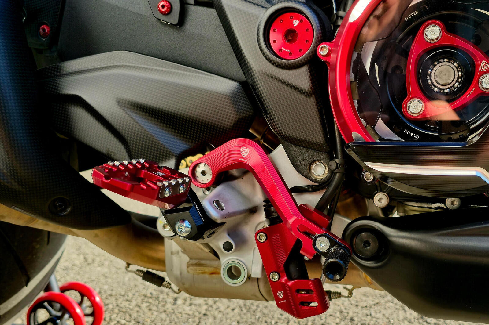 Rear brake lever for Ducati Multistrada V4, V4S and V4 Pikes Peak made in light alloy, machined from solid and then anodized.The slide adjustment allows the customizations of the peg position (range -7/+10 mm).Notice: levers are sold without lever pegs to give the opportunity to combine the preferred lever peg, folding or fixed oneFolding rear brake lever peg - RP9R4B SPORTFixed rear brake lever peg - RP906B Please check Specifications for model compatibility.Delivery note: At Sportsbike, we offer a wide range of high-quality products, many of which are sourced directly from Europe. We have stock both in Australia and shipped in directly from Europe. Therefore, please allow 1-3 weeks for delivery. This ensures we can provide the best selection and service for your specific needs. We will confirm the ETA of shipping within 24-48 hours of an order being placed. Thank you for your understanding and patience!
