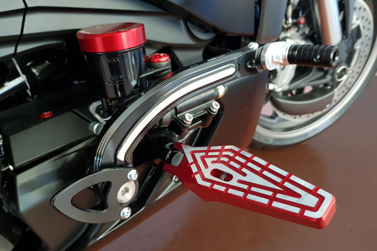 Folding driver footpegs made in light alloy, machined from solid and then anodized, compatible with the OEM rear sets to improve grip and aesthetics of the bike.No modifications required for mounting. Please check Specifications for model compatibility.Delivery note: At Sportsbike, we offer a wide range of high-quality products, many of which are sourced directly from Europe. We have stock both in Australia and shipped in directly from Europe. Therefore, please allow 1-3 weeks for delivery. This ensures we can provide the best selection and service for your specific needs. We will confirm the ETA of shipping within 24-48 hours of an order being placed. Thank you for your understanding and patience!