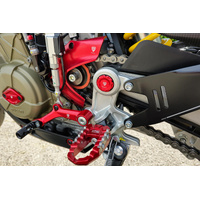 Central bolt caps kit for Ducati OEM rearsets made from a light alloy with subsequent surface anodized.The kit consists of two caps, one for each side. Please check Specifications for model compatibility.Delivery note: At Sportsbike, we offer a wide range of high-quality products, many of which are sourced directly from Europe. We have stock both in Australia and shipped in directly from Europe. Therefore, please allow 1-3 weeks for delivery. This ensures we can provide the best selection and service for your specific needs. We will confirm the ETA of shipping within 24-48 hours of an order being placed. Thank you for your understanding and patience!
