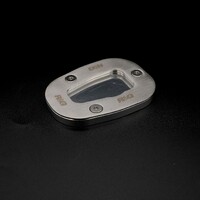 Kickstand shoes bolt onto the bottom of the sidestand, to enlarge the original’s footprint by up to 100%, significantly spreading the load placed upon it, to help prevent the stand ‘piercing’ the ground.