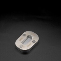 Kickstand shoes bolt onto the bottom of the sidestand, to enlarge the original’s footprint by up to 100%, significantly spreading the load placed upon it, to help prevent the stand ‘piercing’ the ground.