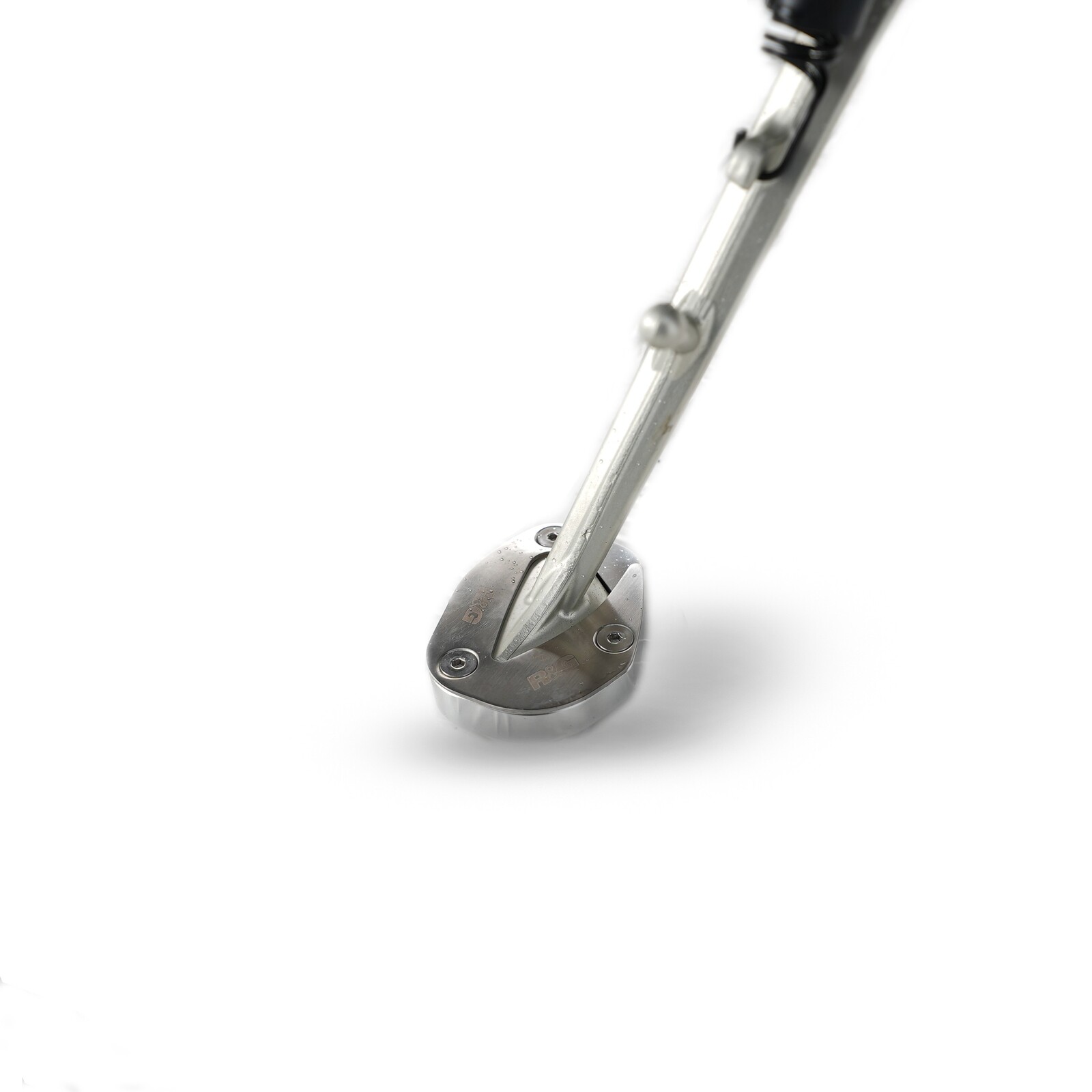 Kickstand shoes bolt onto the bottom of the sidestand, to enlarge the original’s footprint by up to 100%, significantly spreading the load placed upon it, to help prevent the stand ‘piercing’ the ground.