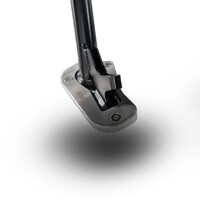 Kickstand shoes bolt onto the bottom of the sidestand, to enlarge the original’s footprint by up to 100%, significantly spreading the load placed upon it, to help prevent the stand ‘piercing’ the ground.