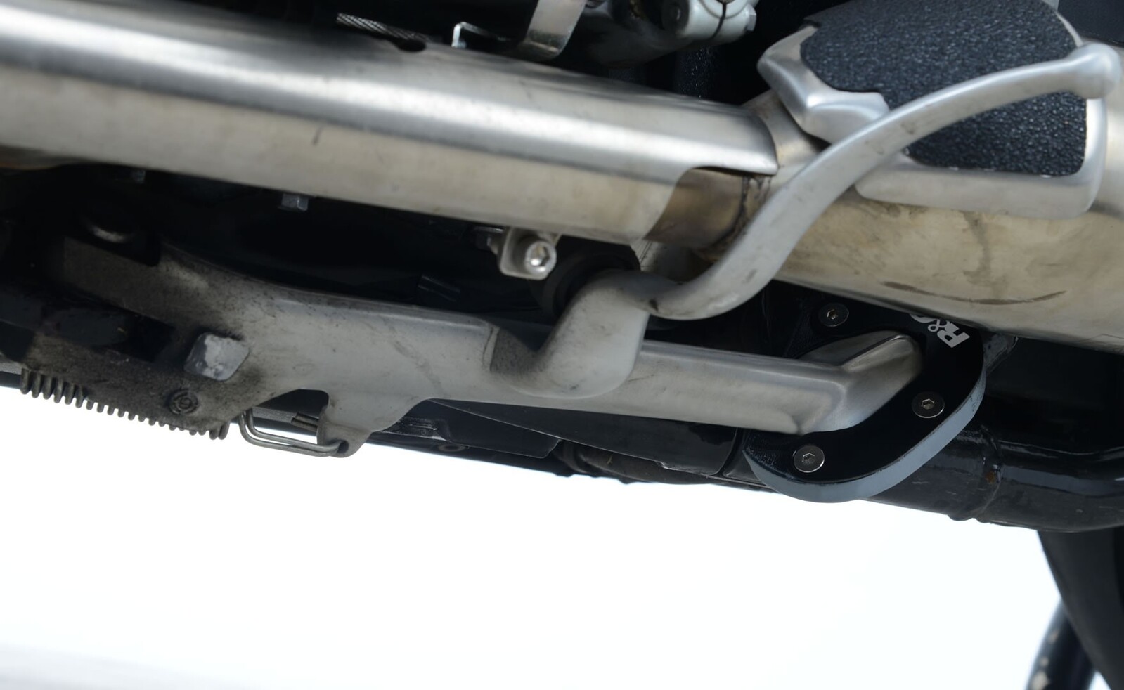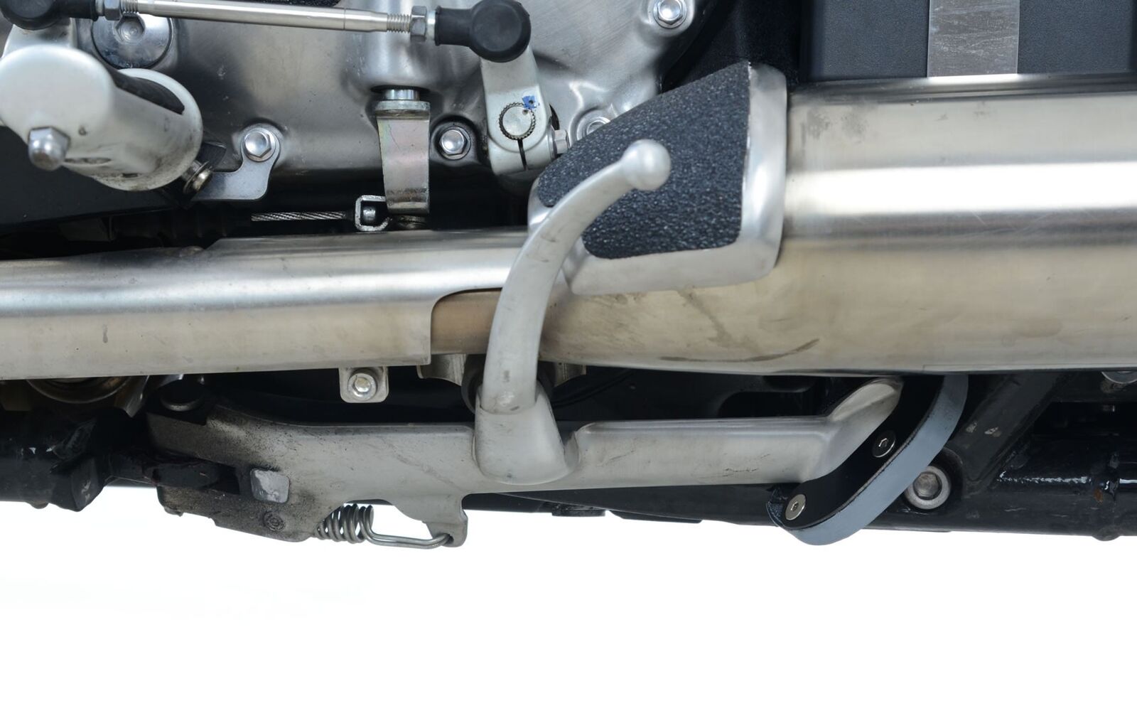 Kickstand shoes bolt onto the bottom of the sidestand, to enlarge the original’s footprint by up to 100%, significantly spreading the load placed upon it, to help prevent the stand ‘piercing’ the ground.
