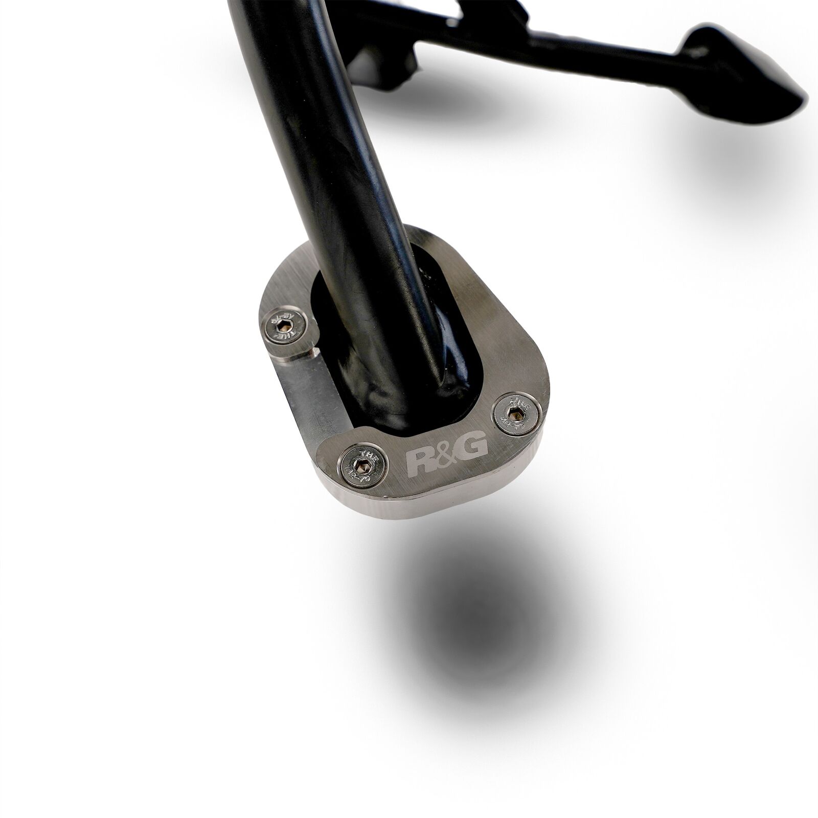 Kickstand shoes bolt onto the bottom of the sidestand, to enlarge the original’s footprint by up to 100%, significantly spreading the load placed upon it, to help prevent the stand ‘piercing’ the ground.