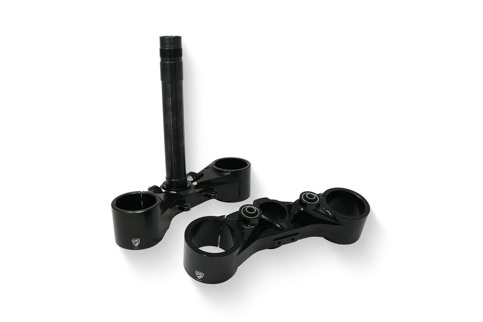 Triple clamps machined from solid in light alloy with subsequent surface anodization.The superior rigidity of this component leads to greater stability of the front axle and a better feeling thanks to the increased driving precision.The triple clamps consists of an upper steering plate 57 mm, a lower steering plate 58 mm, steering tube.The kit is supplied with lightweight steel screws. Please check Specifications for model compatibility.Delivery note: At Sportsbike, we offer a wide range of high-quality products, many of which are sourced directly from Europe. We have stock both in Australia and shipped in directly from Europe. Therefore, please allow 1-3 weeks for delivery. This ensures we can provide the best selection and service for your specific needs. We will confirm the ETA of shipping within 24-48 hours of an order being placed. Thank you for your understanding and patience!