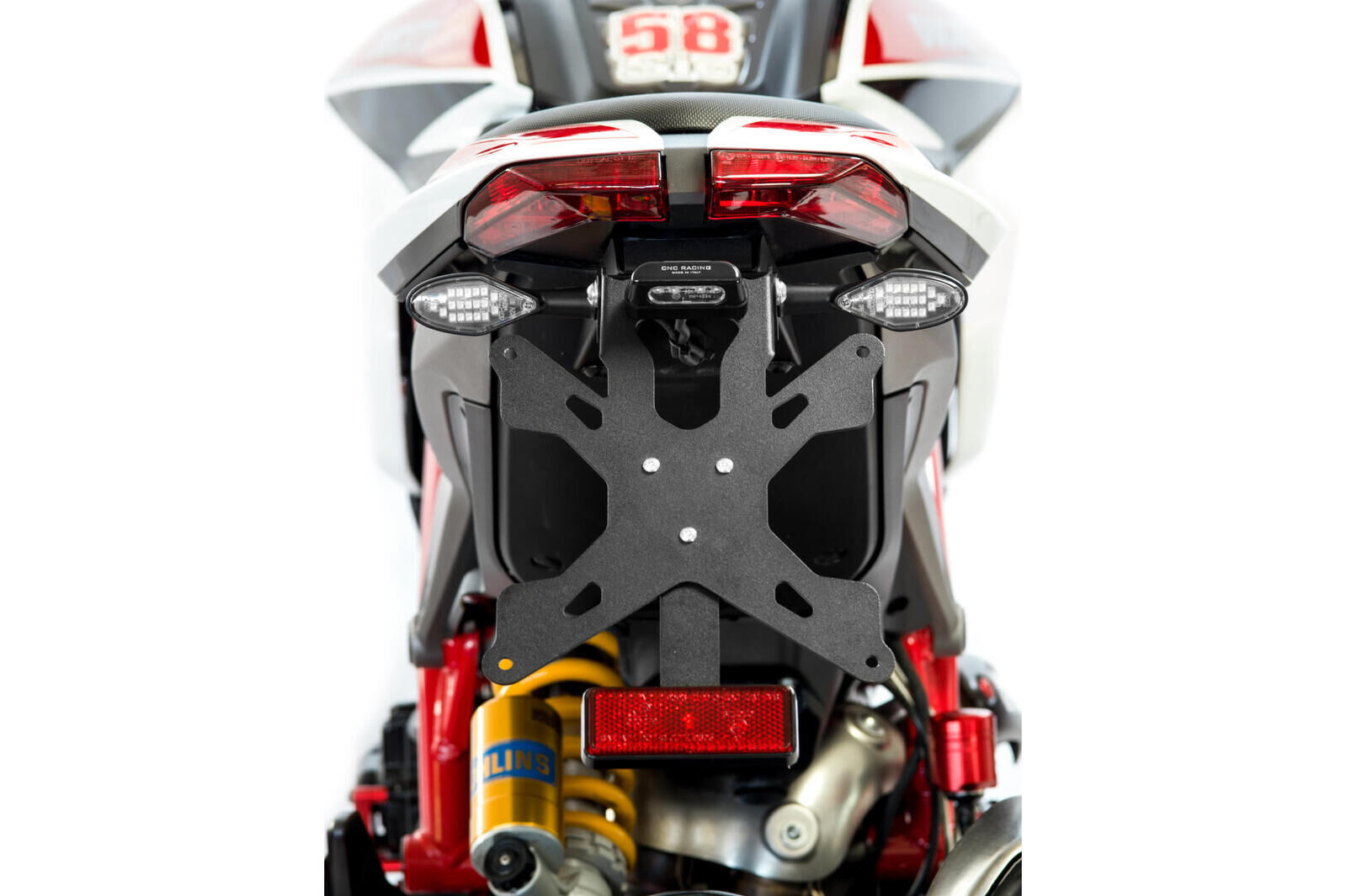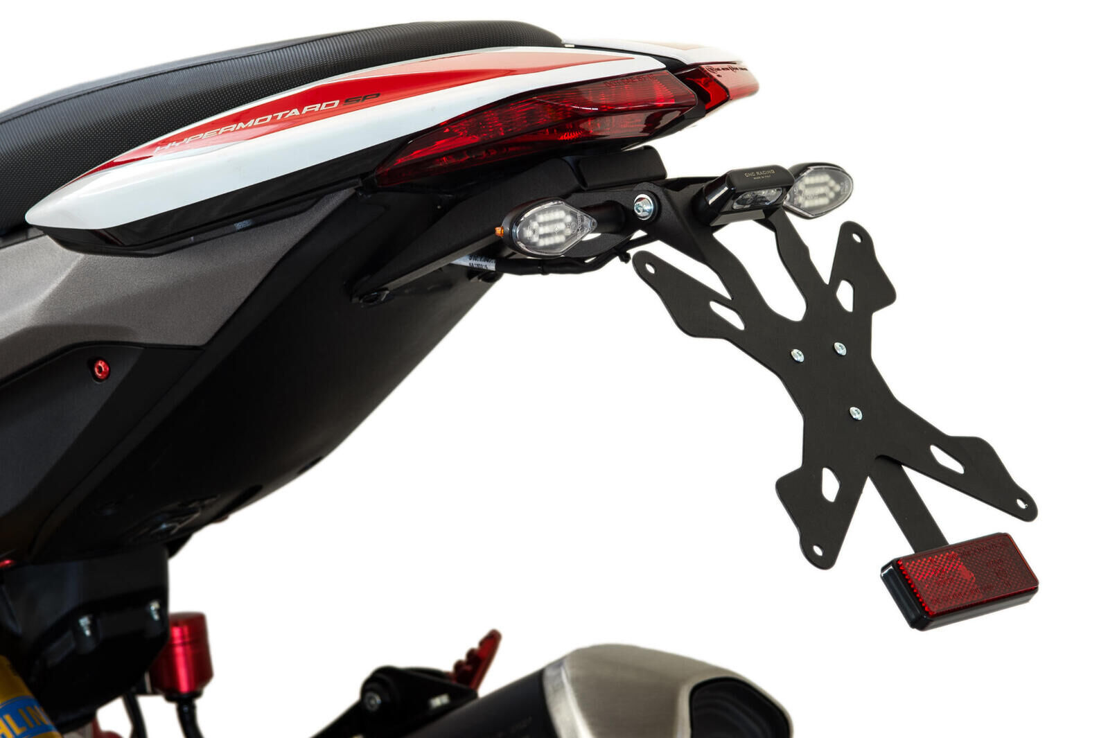 Plate holder adjustable steel including a support plate, license plate light LED, supports arrows reflector.Features:- Connection-specific model of motorcycle including nuts and bolts for quick and easy assembly.- Tilt adjustable thanks to a large-scale settings, you can change the angle of the plate.- Height adjustable plate: the plate can be positioned at various points along its axis until the desired height is reached and measure.- Number plate light LED small approved. Into the kit is included the Italian plate PTX01B; specify in the order if you prefer another size from those available. Please check Specifications for model compatibility.Delivery note: At Sportsbike, we offer a wide range of high-quality products, many of which are sourced directly from Europe. We have stock both in Australia and shipped in directly from Europe. Therefore, please allow 1-3 weeks for delivery. This ensures we can provide the best selection and service for your specific needs. We will confirm the ETA of shipping within 24-48 hours of an order being placed. Thank you for your understanding and patience!