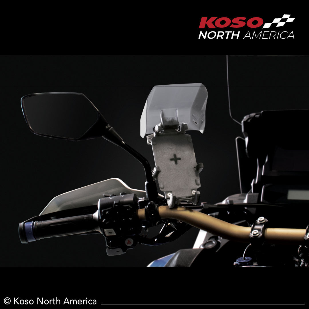 BRAND: Koso SKU: QR005000The new Koso Armor phone mount is the companion you need on your upcoming adventures. Its adjustable screws can suit any smartphone size, even those with thick cases. Its inductive charger allows you to charge your device without any connection or wire to extend the longevity of your phone’s battery in an efficient way. The visor is also part of a well thought out innovative design that the Armor will bring for a clear view of your phone screen.