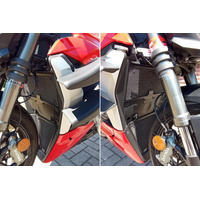 The radiator guard protects the delicate component from impacts with stones, animals or other. The guard does not reduce the functionality of the radiator.The fixing is, according to the models, with screws and / or zip ties, provided. There's no modification needed to fit the radiator guard.The set consists of 2 pcs. Please check Specifications for model compatibility.Delivery note: At Sportsbike, we offer a wide range of high-quality products, many of which are sourced directly from Europe. We have stock both in Australia and shipped in directly from Europe. Therefore, please allow 1-3 weeks for delivery. This ensures we can provide the best selection and service for your specific needs. We will confirm the ETA of shipping within 24-48 hours of an order being placed. Thank you for your understanding and patience!