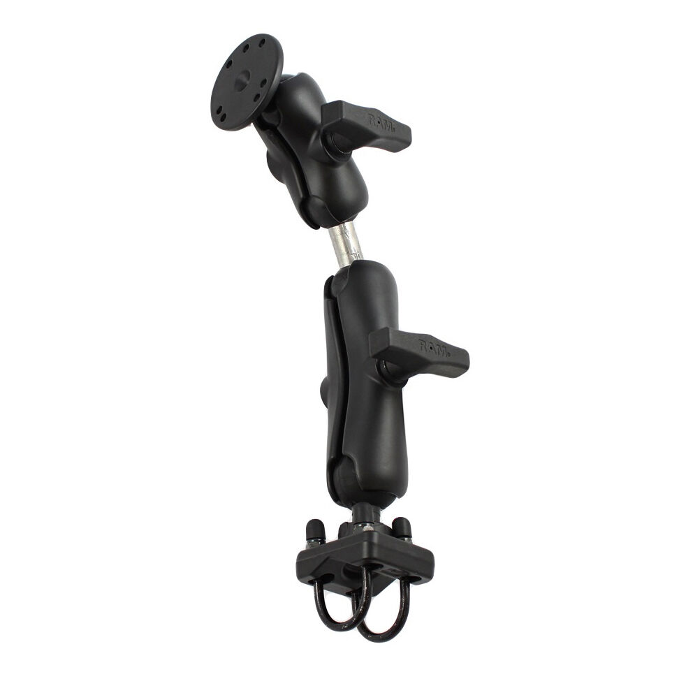 This kit contains a short double socket arm connected to a medium double socket arm with a double-ball adapter. On the bottom is our c-size double u-bolt base and on top is our 1.5 inch ball with 2.5 inch AMPS mounting plate.