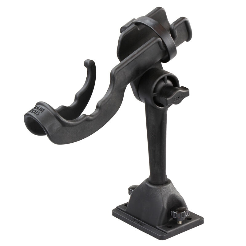The RAM-114-DU, high strength composite fishing rod holder with deck track base, is a must have for the fishing enthusiast. Designed to mount onto a horizontal RAM track in your boat, you can rotate the rod holder 360 degrees, while tilting the cradle forward and back for the optimum angle.