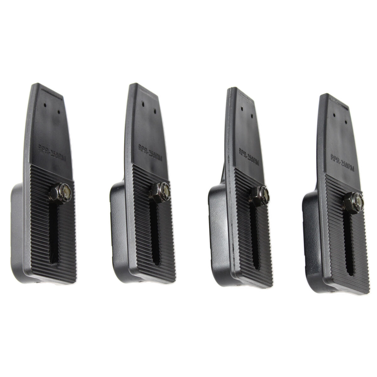 The RAM-234R1-4U is a set of Retaining arms for the RAM Tough-Tray with not angled support of flat clamping leg. These side supports can be positioned in front of or behind your laptop if you plan on using the device at a steep angle and do not want it to slip out of the Tough Tray.