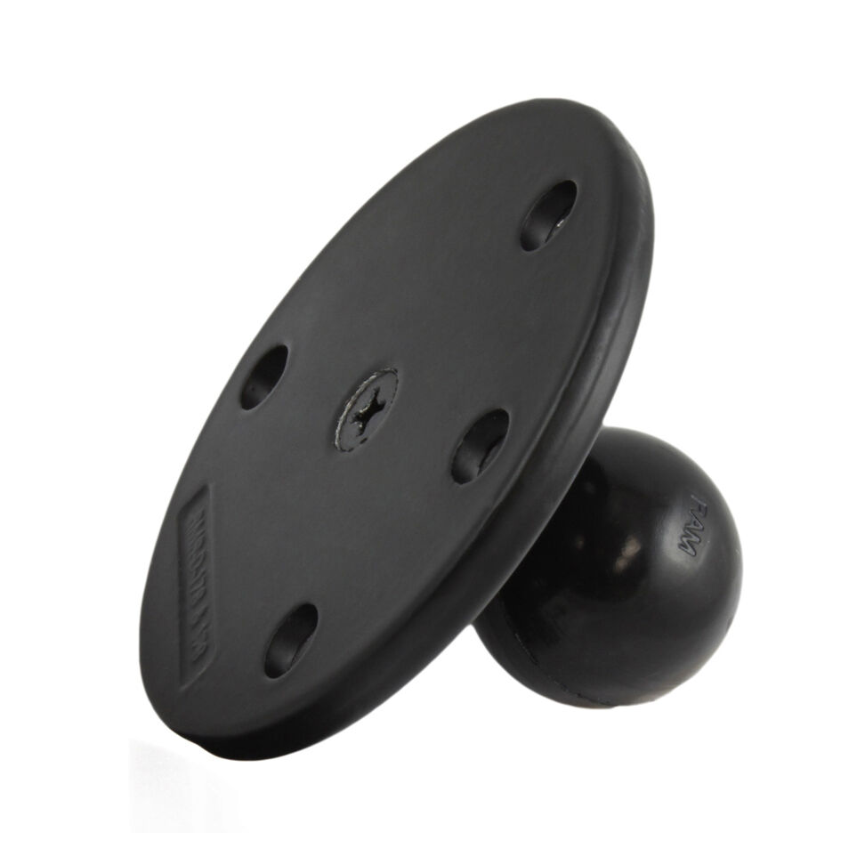 The RAM-240U consists of a steel reinforced 1.5" diameter rubber ball connected to a flat 3.68" diameter base. This base has 3-hole 120 degree pattern pre-drilled holes that connects to RAM Tough-Dock Powered Docking Stations.