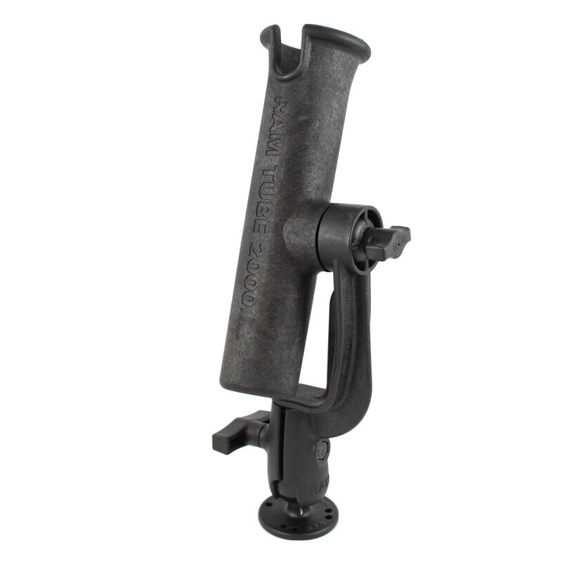 The RAM-301-RBU features the RAM-TUBE 2008 fishing rod holder, RAM ROD Revolution ratchet arm with single open socket and 2.5" diameter round base with 1.5 ball. Combining the patented RAM rubber ball and socket system with a ratcheting feature; this rod holder has almost infinite adjustability and configuration options. Easily collapse the rod holder down on the deck for clearing your casting path or articulate over the water, and out of the boat or kayak. The tube holder integrates a self-draining feature and is a quick to access for the butt of most any fishing rod. The tube is made of extremely durable composites. Ideally suited for anything from Kayaks to Tournament boats, this compact and simple design is ready for your next day on the water.