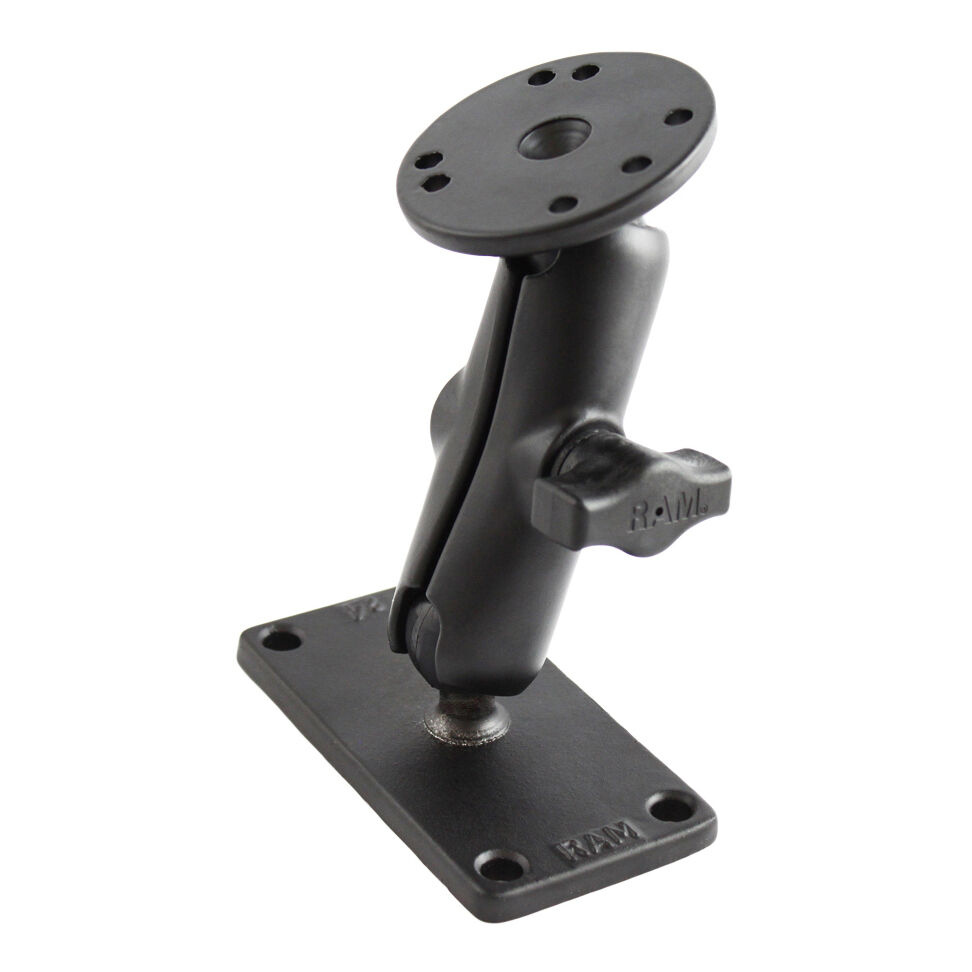 The RAM-B-101-24U consists of a medium length B-size arm with a 2.5" diameter round plate with universal AMPS hole pattern and a 2" x4" rectangular plate.