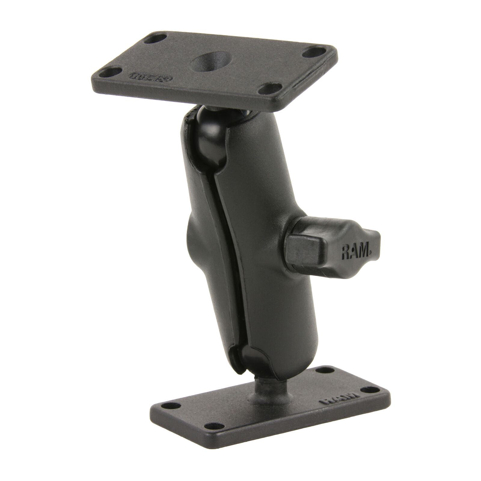 The RAM-B-102U-153 consists of a medium length B size 1" double socket arm and two 1.5 x 3 rectangular ball bases that contain 1" x 2.5" hole patterns. The ball and socket system provides shock and vibration damping, and allows for near-infinite adjustability to achieve an ideal viewing and operating angle of your device.