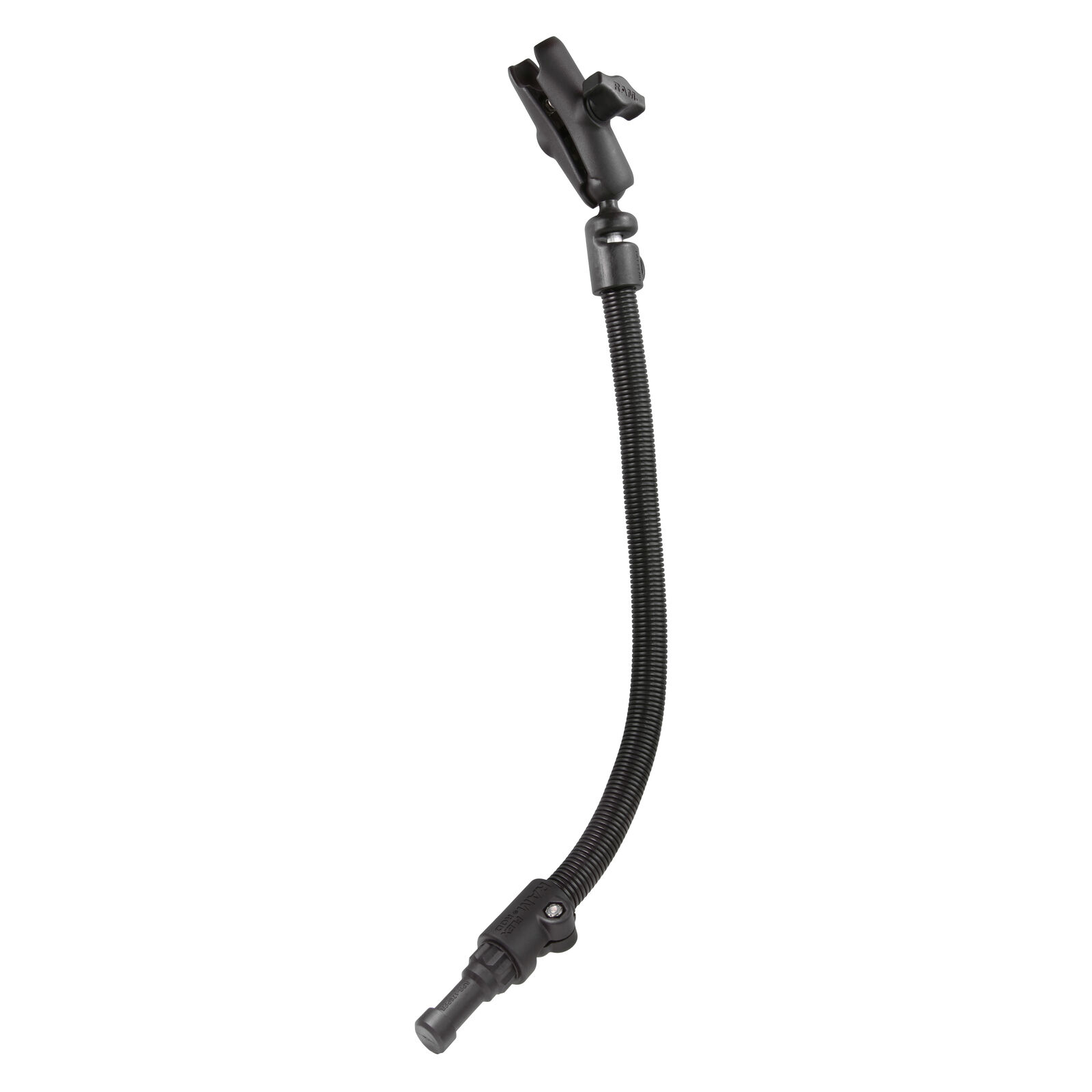 The RAM Quick Release Flex Arm Extension consists of a 3.73" long B size socket arm, an 18" long rigid aluminum rod, and a post adapter that will connect to the RAM Universal Wheelchair Base receiver. The quick disconnect feature on the post allows you to quickly insert and remove the mount from the base as needed. The socket arm can adapt to any RAM holder with ball for supporting your phone, tablet, cup holder, or any other device. The rigid aluminum rod can be pre-bent to the desired position to set your device at the perfect viewing/operating angle. When connected to a seat track, one of the rod clevises can be loosened to create a convenient swivel feature of the mount.