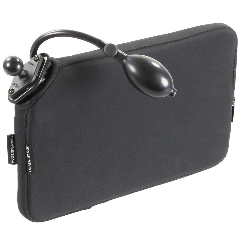 The Tough-Wedge is a mount that fits in the gap between the vehicle seat and center console or potentially a center seat. This allows for easy access and operation of a mobile device. The Tough-Wedge can also be used for back-seat applications by inserted into the pockets located on the back of the front seats. For capturing video on the go, place the Tough-Wedge in your backpack with a RAM camera mount. The included diamond adapter contains the industry standard AMPS hole pattern that allows attachment to a variety of RAM mounts. Hardware included to attach the Tough-Wedge to the mount. The 1" diamond ball base is compatible with all RAM-B size single and double socket arms. Included in this kit is an innovative Expansion Pouch accessory for the RAM Tough-Wedge. This optional accessory is designed to add stability to your wedge mount for vehicle with a larger gap between seats. The Expansion Pouch fits inside the Tough-Wedge sleeve and is then inflated with the hand pump to the desired level, ensuring your device stays firmly in place.