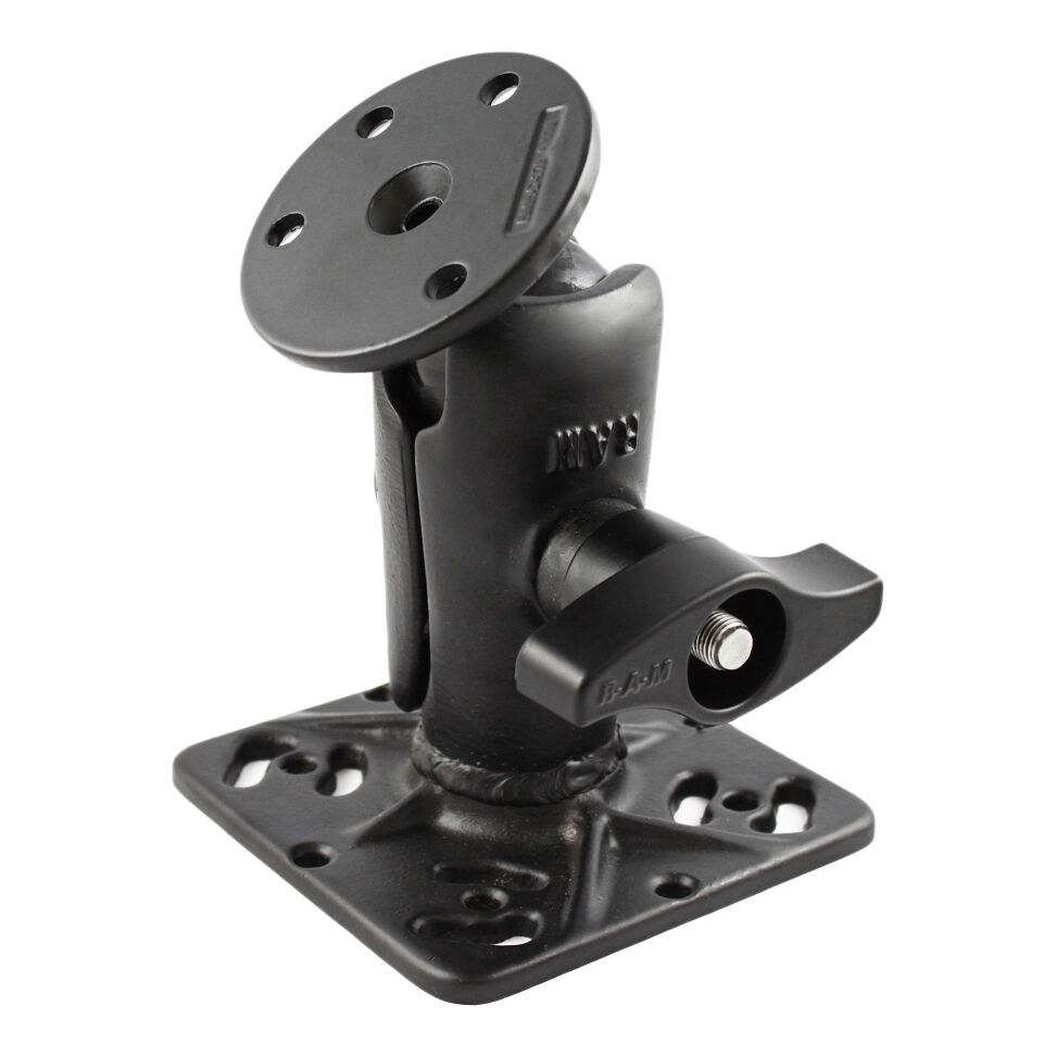 The RAM-D-112-D consists of a 3.68" diameter round base, socket arm and plate for downriggers.