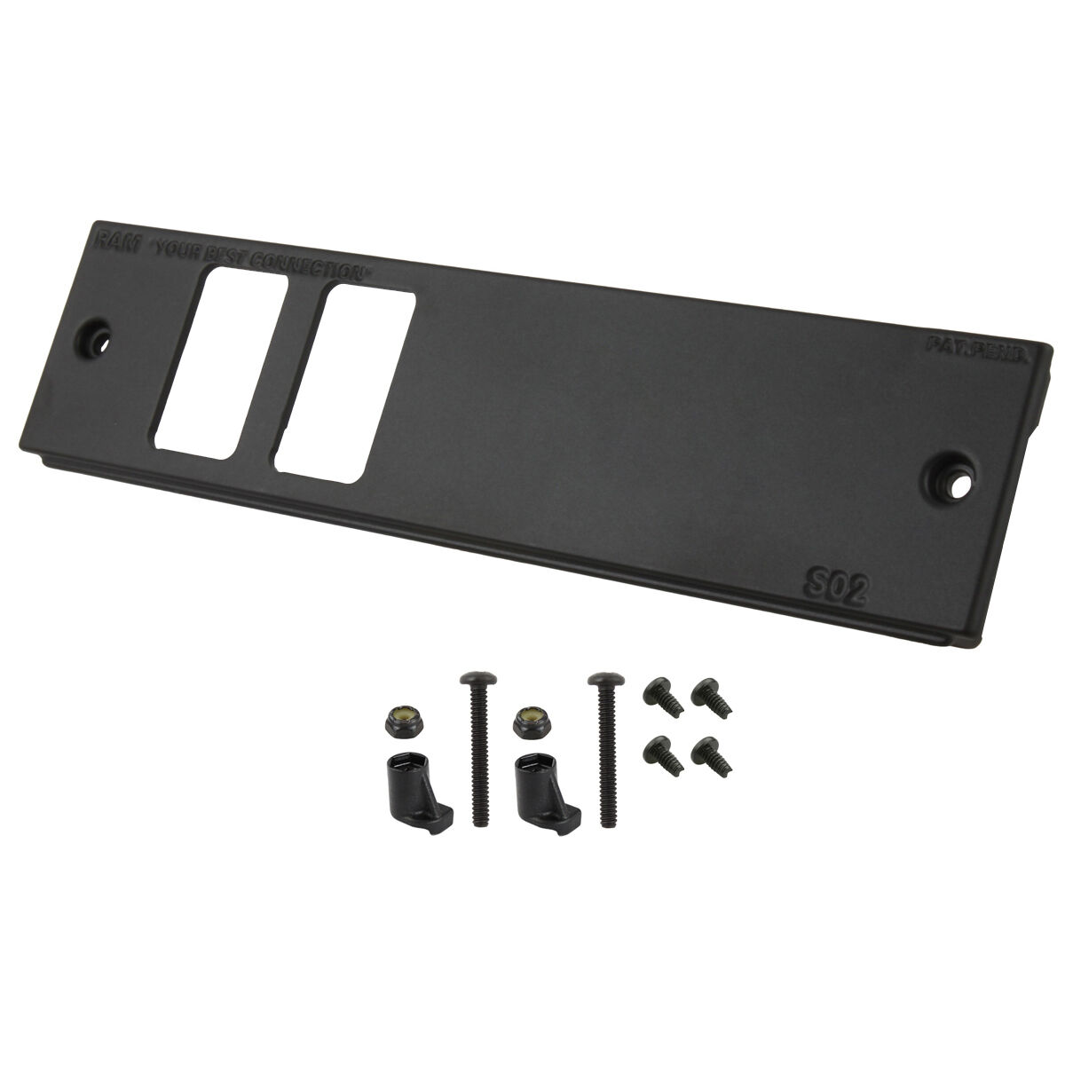 Custom 2" (2-slot) Switch Faceplate for RAM Tough-Box Consoles. The innovative tongue and groove feature keeps the inside of the console free of contaminants as well as provides a rock solid system once installed into the RAM Tough-Box Console.