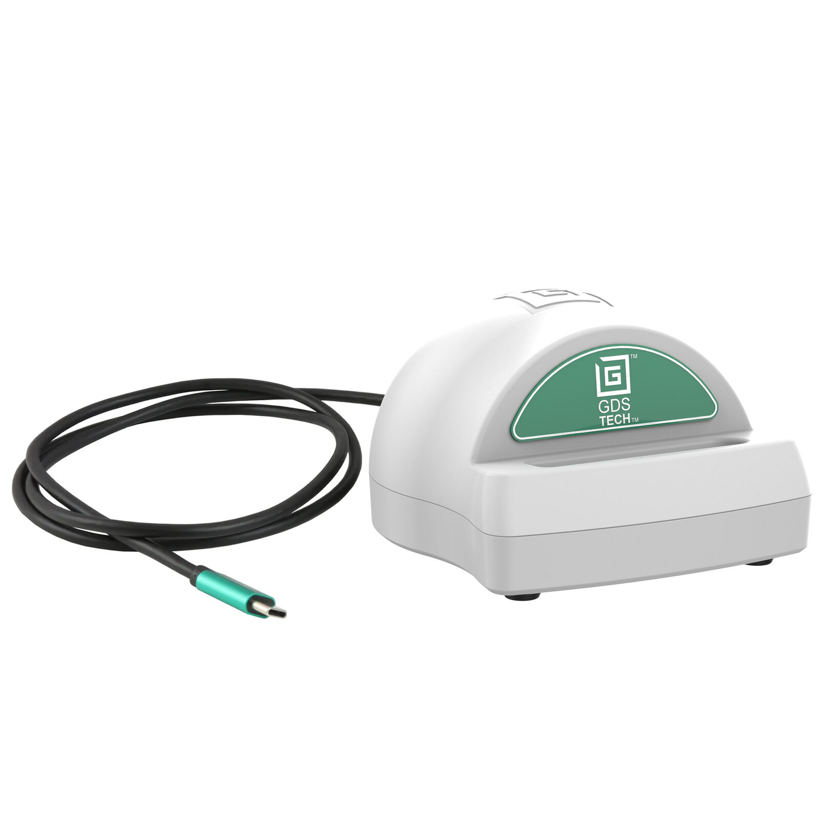 The GDS Desktop Dock with Power Delivery - Small Tablets & Phones - Gray (RAM-GDS-DOCK-D7U-GRY) is a low-profile docking and charging station for phones and small tablets wrapped in an IntelliSkin protective sleeve. The desktop dock provides power connectivity only and is designed for everyday use of most tablets and phones. It features pogo pin contacts designed to match the pogo pads on IntelliSkin-wrapped devices supporting USB Type-C charging profiles. The USB Type-C charging cable is integrated into the back of the dock with a power output of 20V @3A max. This dock will support all USB Type-C devices wrapped in both IntelliSkin and IntelliSkin Next Gen devices. The light gray aesthetic is ideal for sophisticated, bright workplaces in industries such as retail, medical, and more. Always Protected. Always Connected.
