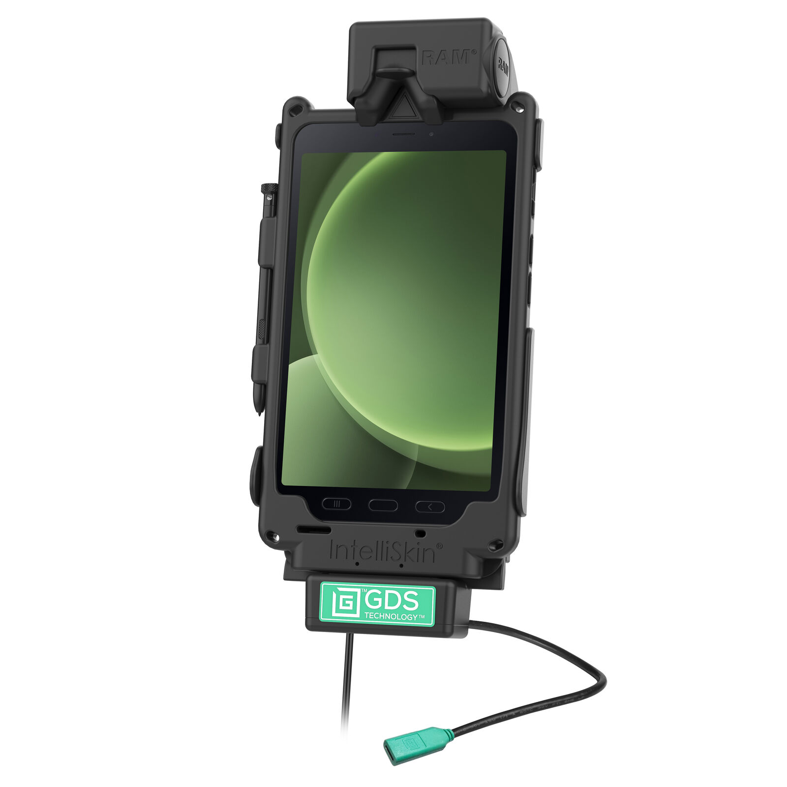 The GDS Cool-Dock is the upgraded version of the GDS Tough-Dock including a built-in 12-VDC Axial cooling fan with a 2.2 meter long hardwire power cord. The GDS Cool-Dock is the turnkey vehicle dock in the GDS Tech line of vehicle docks designed to support the Samsung Galaxy Tab Active5, Tab Active3 and 2 in a Next Gen IntelliSkin protective sleeve for your fleet. Using a USB Type-C power connector, the GDS Cool-Dock supports data sync and fast charging capabilities for the Samsung Galaxy Tab Active5, 3 and 2. The GDS Cool-Dock contains a 4-hole AMPS pattern; compatible with RAM ball and socket mounting systems. The GDS Cool-Dock is backed by a 3-year warranty. Get the Heat Out! with GDS Cool-Dock. Always Protected. Always Connected.