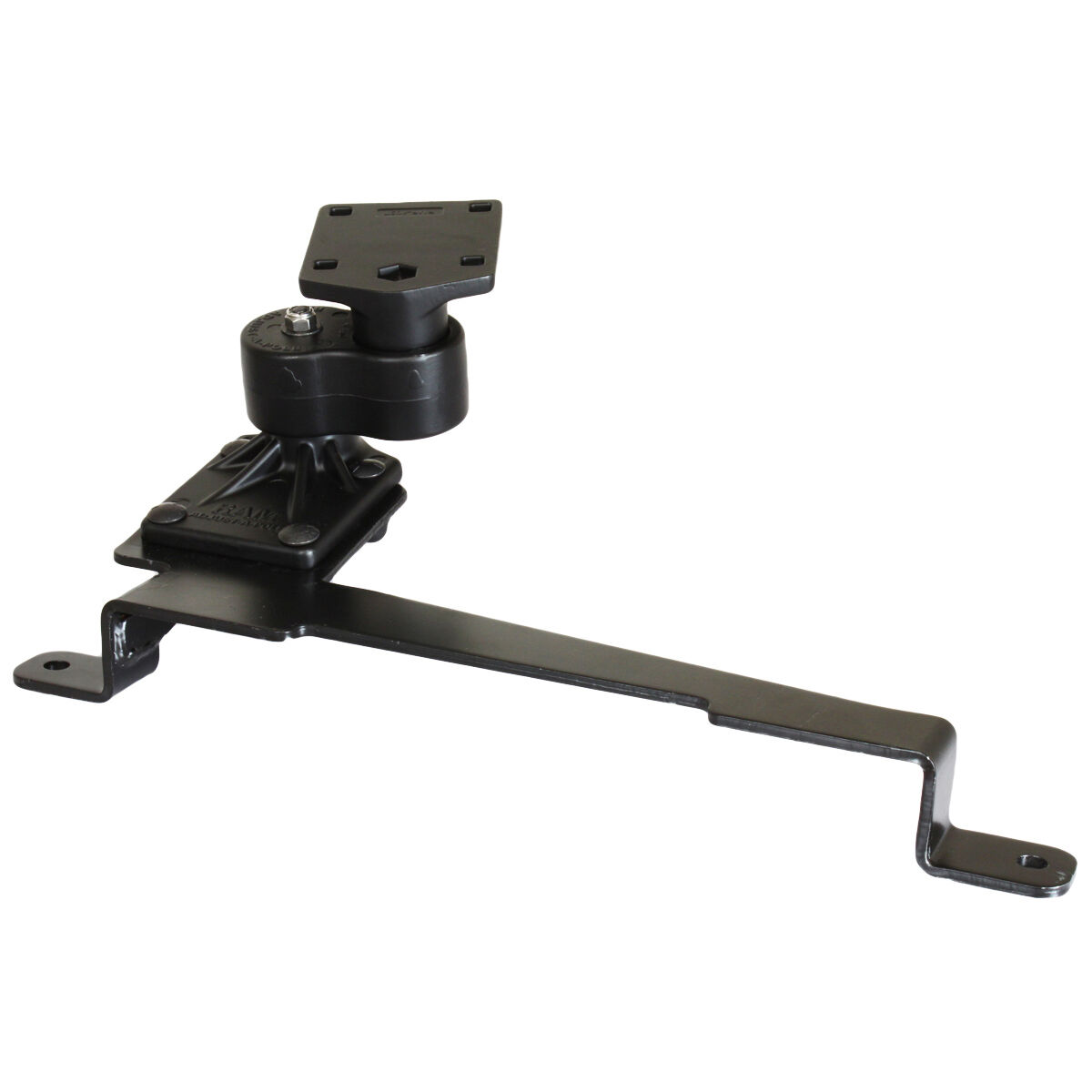 The RAM No-Drill laptop mounting base features a heavy-duty steel mounting base custom designed to fit this vehicle perfectly. Using the passenger side seat rail bolts as attachment points, existing hardware is used to secure the laptop mount base in the vehicle.