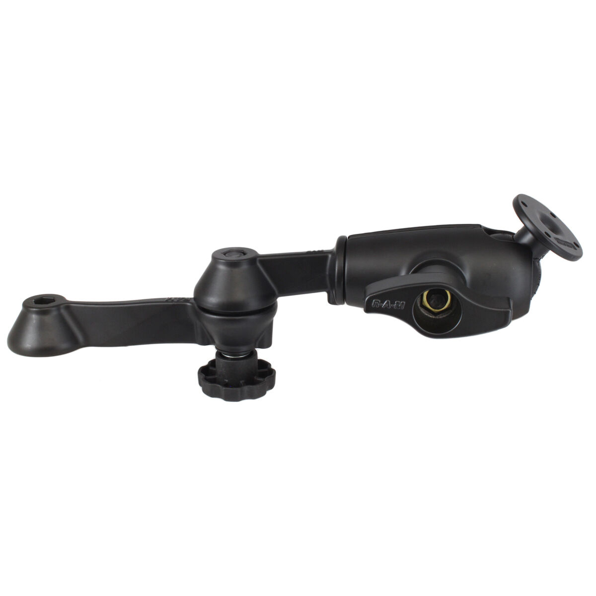 The RAM Mount RAM-VB-D-110-1-254U Double Swing Arm with Rotating Plate, allows you to twist and tilt the viewing angle of your laptop, tablet, UMPC, monitor, or any other connected electronic device, when mounted on your RAM Vehicle Mount. Taking the highly successful RAM Vehicle Mounts to the next level, this rotating swivel arm gives you even more viewing positions for your mounted electronic device while holding everything firmly in place.