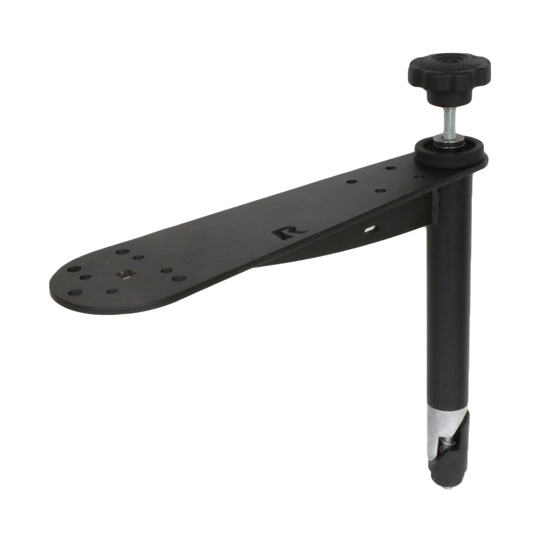 The RAM-VP-TTMLF8U consists of a 14" flange swing arm plate, connected to a 8" male Tele-Pole. The flange plate has dual mounting points for swing arms, AMPS hole pattern bases, and the RAM 120 degree hole pattern. Common applications include mounting a display with keyboard, a handheld mobile computer with portable printer or similar device combination. The male Tele-Pole is 8" long and has a diameter of 1.328".