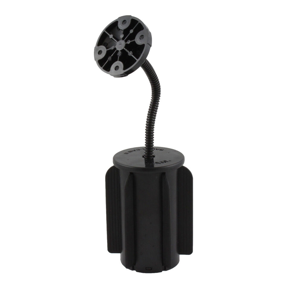 The RAP-299-202U consists of a universal cup holder base, 6" flex arm and 2.5" round base adapter that contains the universal AMPs hole pattern. A durable composite shell construction and soft fins that can be trimmed to fit makes the cup holder mount one of the most portable and versatile Go Anywhere products offered.
