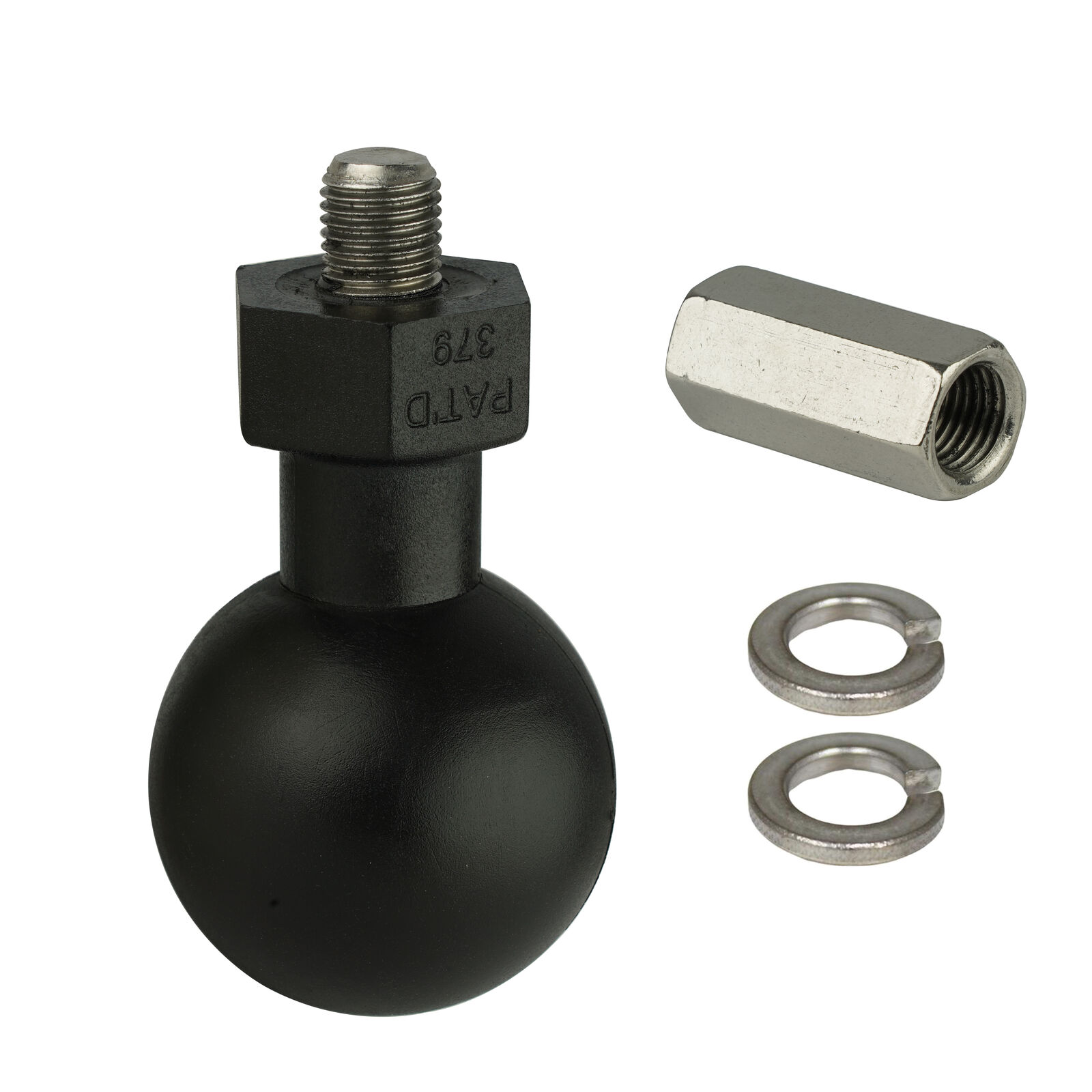 This weBoost Kit Ball adapter consists of a C size 1.5" diameter RAM Tough-Ball ball connected to a 3/8"-24 x .375" male threaded post with a coupling nut and two lock washers. The ball is compatible with all RAM C Size ball & socket components, allowing you to secure your weBoost antenna in virtually any location.