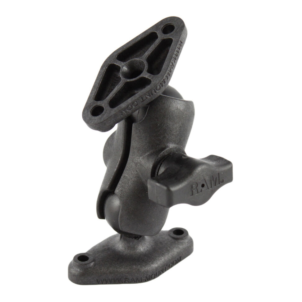 The RAP-B-102U-A consists of a short double socket arm and two 1" ball diamond bases. The diamond bases contain two holes 1.912" from center to center, positioned at both ends. The hole pattern found on the diamond plate will connect to many RAM cradles, as well as third party cradles including mounts with the industry standard AMPS hole pattern.