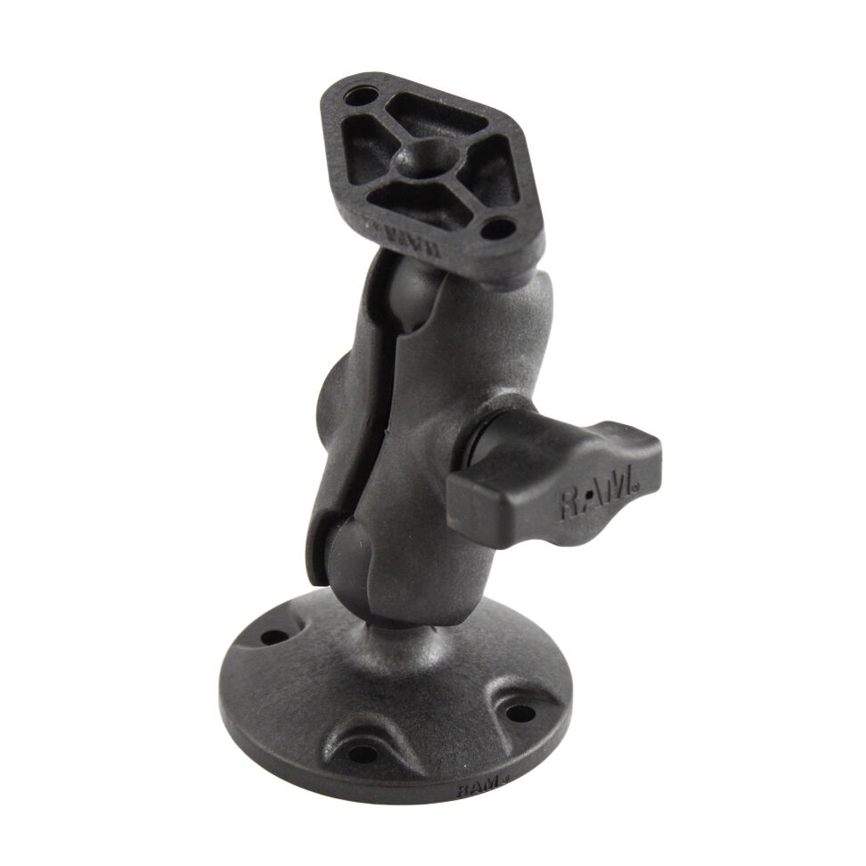 Simply choose your preferred mounting location and the possibilities become endless with the RAP-B-138-AU. Rubber ball and socket technology allows for almost infinite adjustment and perfect viewing angles. High quality materials insure your device is safe, secure, and within easy reach. RAMs patented design also dampens shock and vibration helping to extend the life of your device. This mount is designed to be a universal mounting solution for both RAM and non-RAM designed products. The hole pattern found on the diamond base will connect to a large variety of third party cradles and mounts. The base has a 1.0" diameter rubber ball connected at right angles to a 2.5" diameter base.