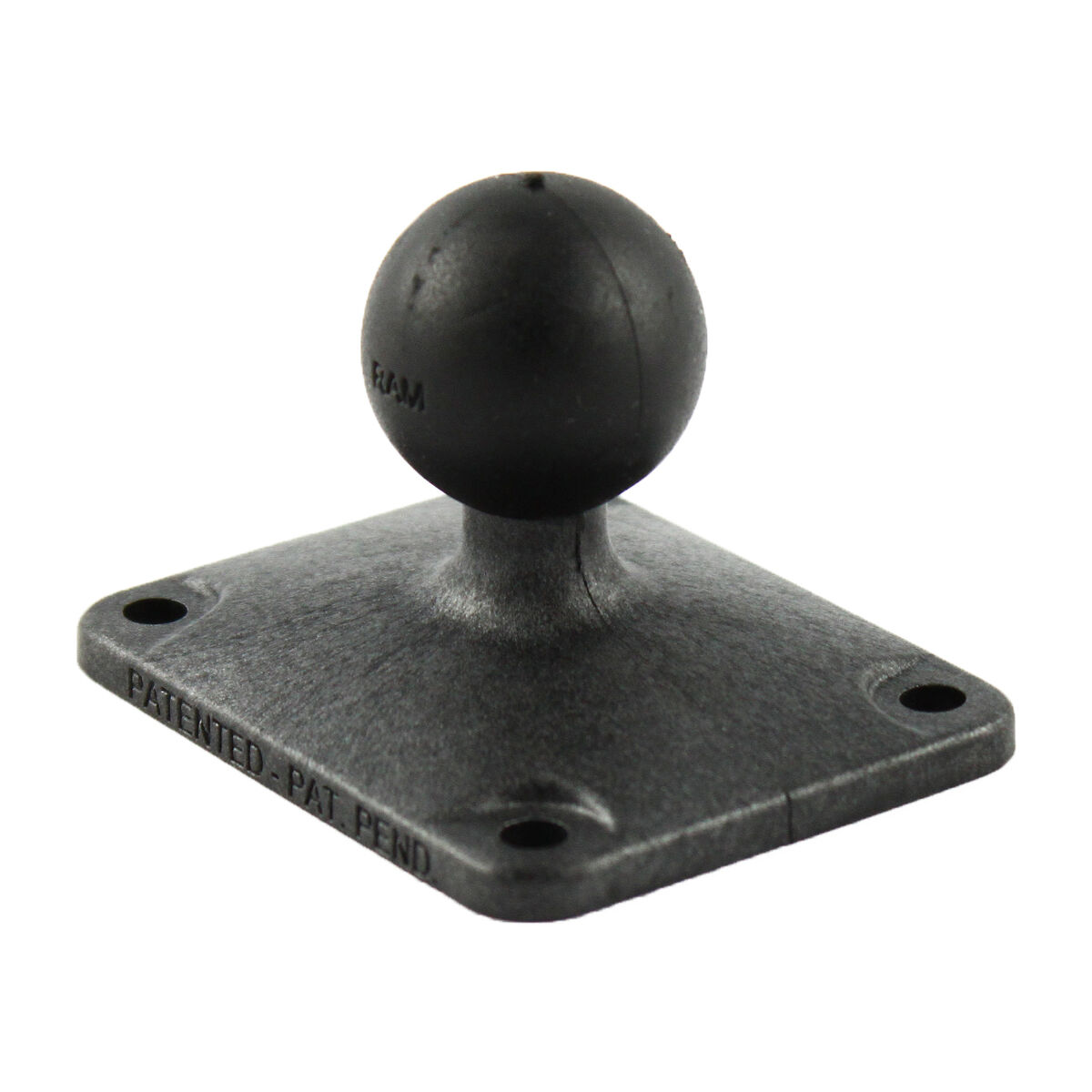 The RAP-B-202U-225 contains a 1" diameter rubber ball connected to a high strength composite rectangular plate with a 4-hole pattern of 1.5" x 2" center to center.