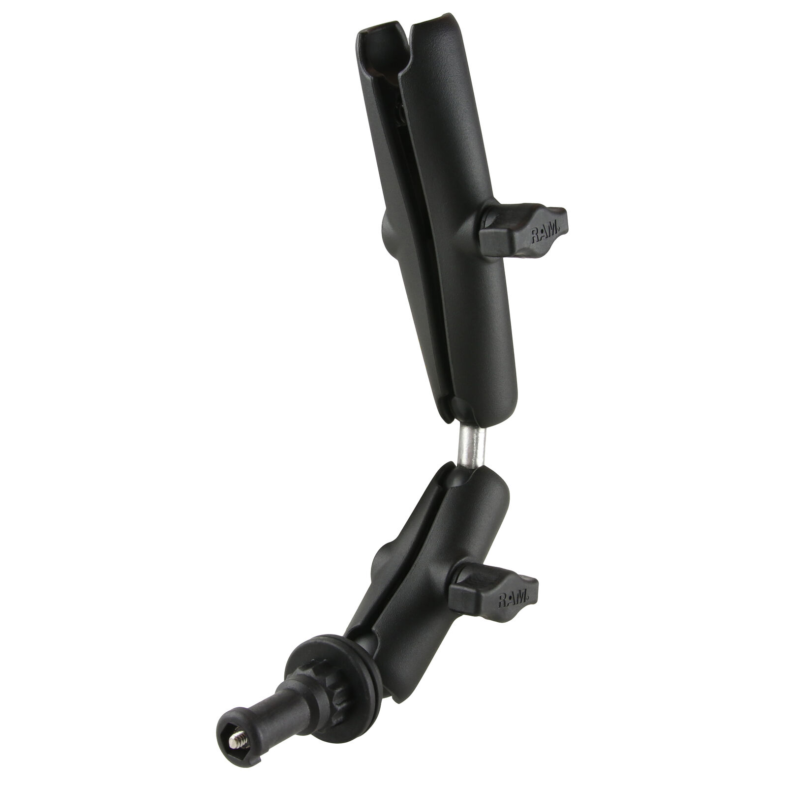 The RAM Quick Release Socket Arm Extension consists of a 6" long B size socket arm, a 3.73" long B size socket arm, a double ball adapter connecting the two arms together, and a post ball adapter that will connect to the RAM Universal Wheelchair Base receiver. The quick disconnect feature on the post allows you to quickly insert and remove the mount from the base as needed. These socket arms can adapt to any RAM holder with ball for supporting your phone, tablet, cup holder, or any other device. To achieve the perfect mounting position of your device you could use only one of the socket arms provided, or connect the two arms together for the extra extension.