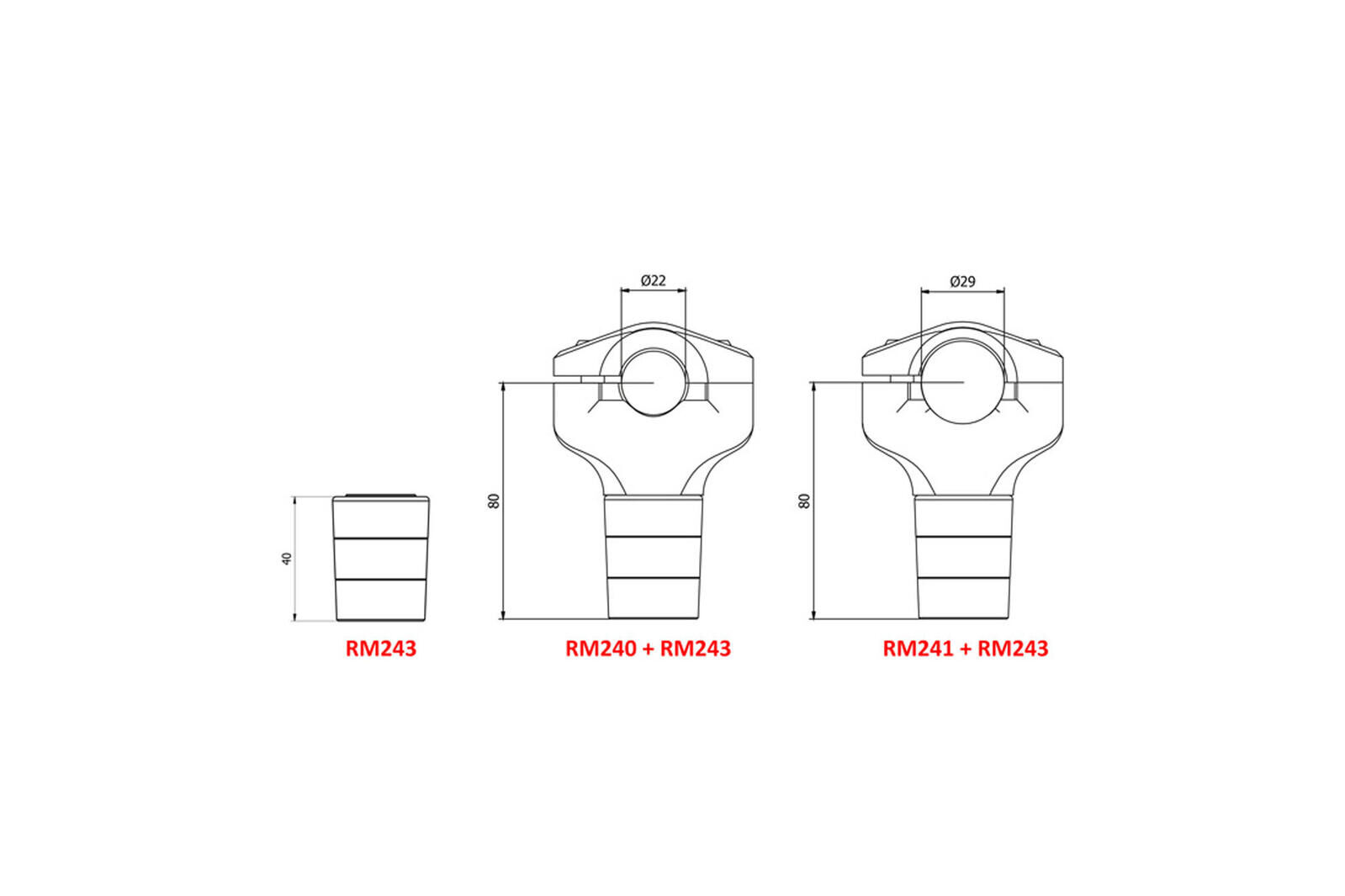 Constructed from solid alloy through processing with subsequent surface anodized.Equipped with all the necessary screws for mounting.Notice: Optional for our complete riser RM240 and RM241. Please check Specifications for model compatibility.Delivery note: At Sportsbike, we offer a wide range of high-quality products, many of which are sourced directly from Europe. We have stock both in Australia and shipped in directly from Europe. Therefore, please allow 1-3 weeks for delivery. This ensures we can provide the best selection and service for your specific needs. We will confirm the ETA of shipping within 24-48 hours of an order being placed. Thank you for your understanding and patience!