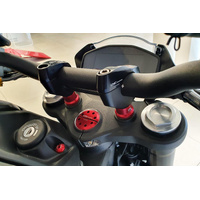 Handlebar upper clamps made of light billet-machined alloy with subsequent surface anodizing treatment.Fixing screws, in lightened stainless steel, are included.Installation is easy and requires no modification. Please check Specifications for model compatibility.Delivery note: At Sportsbike, we offer a wide range of high-quality products, many of which are sourced directly from Europe. We have stock both in Australia and shipped in directly from Europe. Therefore, please allow 1-3 weeks for delivery. This ensures we can provide the best selection and service for your specific needs. We will confirm the ETA of shipping within 24-48 hours of an order being placed. Thank you for your understanding and patience!