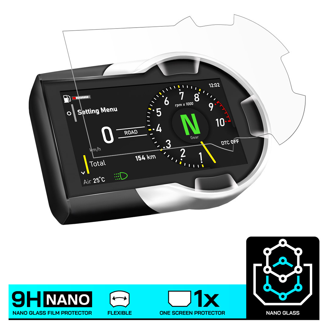Our standard screen protectors are made entirely from plastic, while Nano Glass is manufactured from Plexiglass. This makes it slightly thicker and more scratch resistant, giving it a premium feel and performance. However, due to reduced flexibility, Nano Glass is available for fewer motorcycle models. It’s a higher-end option, offering the perfect balance of strength, protection, and value.