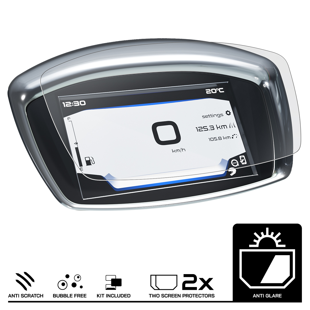 - Anti-Glare: Offers the same scratch resistance as Ultra-Clear but reduces glare and reflections from LCD/TFT dashboards. Anti-glare protectors have a subtle matte appearance once fitted. (If anti-glare is not listed for your model, it is currently unavailable.)